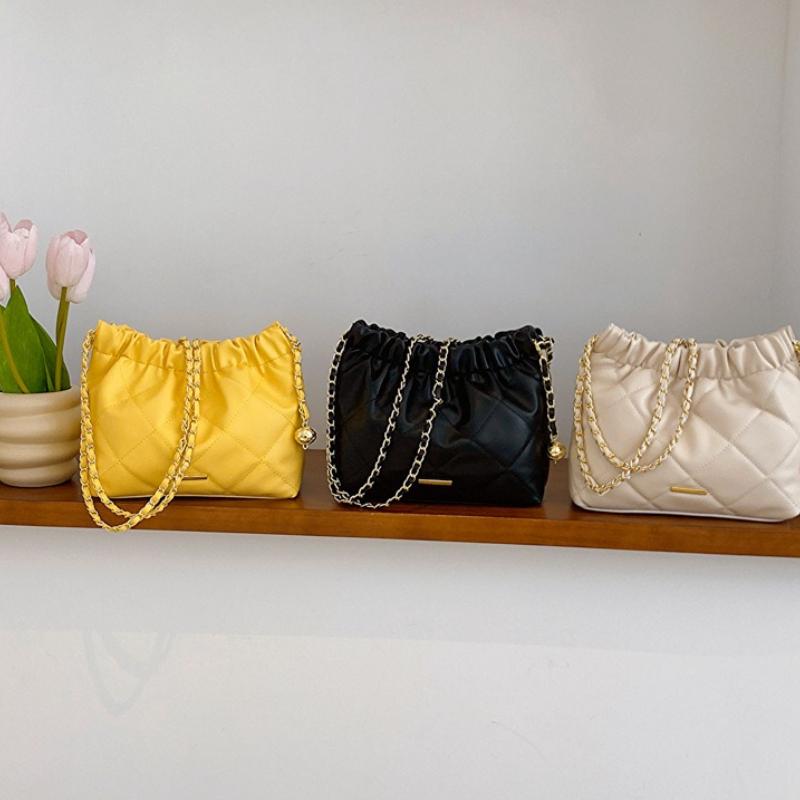 Soft Leather Large Capacity Fashiable Pleated Chain Shoulder Bag, New Stylish Casual Bag, Drawstring Crossbody Bags