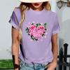 Women's Fashionable Round Neck Casual Retro Print Short Sleeved T-shirt Top