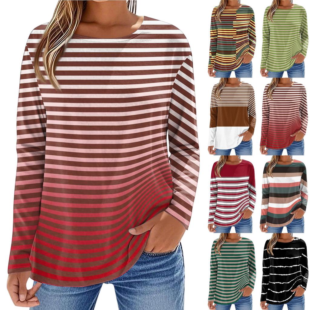 Women's Fashionable Casual Printed Long Sleeved Round Neck Top Round Neck Top Top
