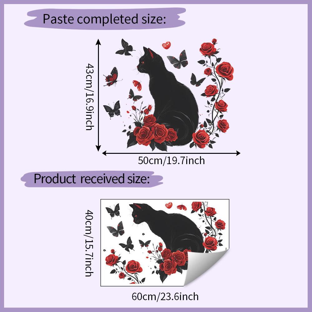 Red Rose Black Cat Butterfly Lettering Wall Sticker Self-Adhesive Removable Living Room Bedroom Hallway Home Decor Art