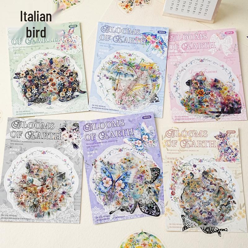 Yi Niao Blossoms Series Flower-Themed PET Sticker Pack - 6 Designs for Journals