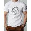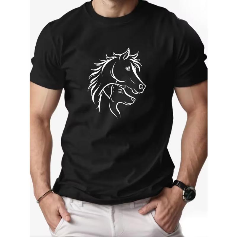 European Size Men'S Summer Casual Short-Sleeve T-Shirt Featuring a Silhouette Pattern of a Horse And a Dog