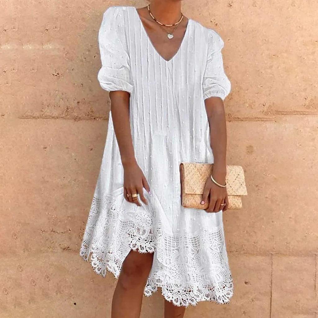 Fashion Women's Summer V Neck Casual Fashion Color Pullover Dress