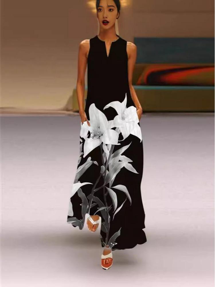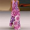 Sexy Sleeveless V Neck Printed Long Dress Women Summer European American Style