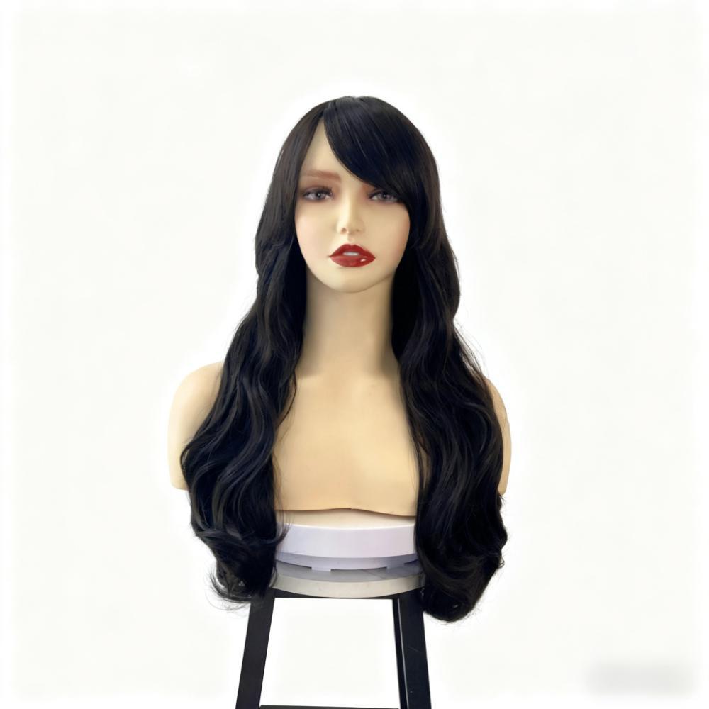 Wig Women's Long Hair European American Black Diagonal Bangs Curly Mechanism Full Head Cover Wigs