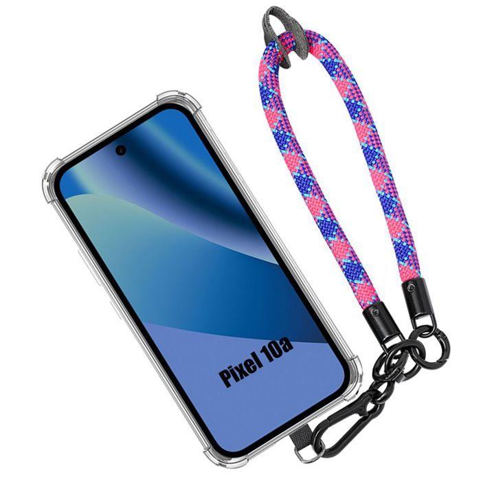 Coque pour Google Pixel 10a, Antichoc Silicone Transparent avec Bracelet Tricolore Amovible