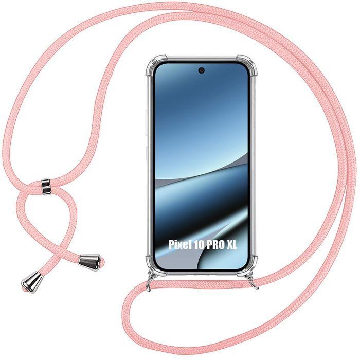 Coque pour Google Pixel 10 Pro XL, Protection Anti-Rayure Transparente TPU avec Cordon Rose