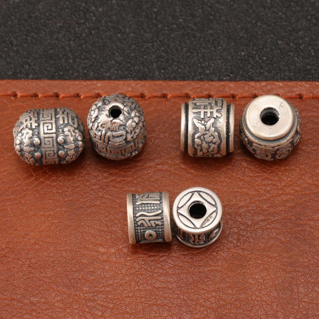 S999 Sterling Silver Wealth & Peace Barrel Spacer Beads for DIY Braiding Rope Silver Accessories