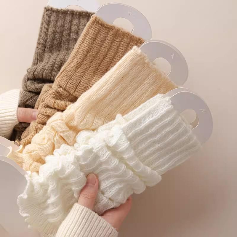 Women's White Knitted Slouch Socks for Spring/Autumn, Mid-High Calf, JK School Style, Perfect with Leather Shoes