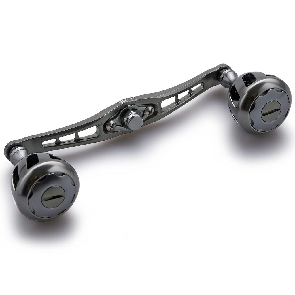 [Features] 32mm diameter hollow lightweight design knob, 120mm double handle. [Size] Knob diameter 32mm, handle axis distance 120mm [Total weight] 43g [Material] 70 series aircraft aluminum. [Included] 2 x 4x7mm center nuts, 2 x 5x8mm center nuts, 1 x conversion sleeve. [Compatible models] Applicable to DAIWA, SHIMANO, and ABU GARCIA baitcasting reels with 4x7mm and 5x8mm mounting parts.