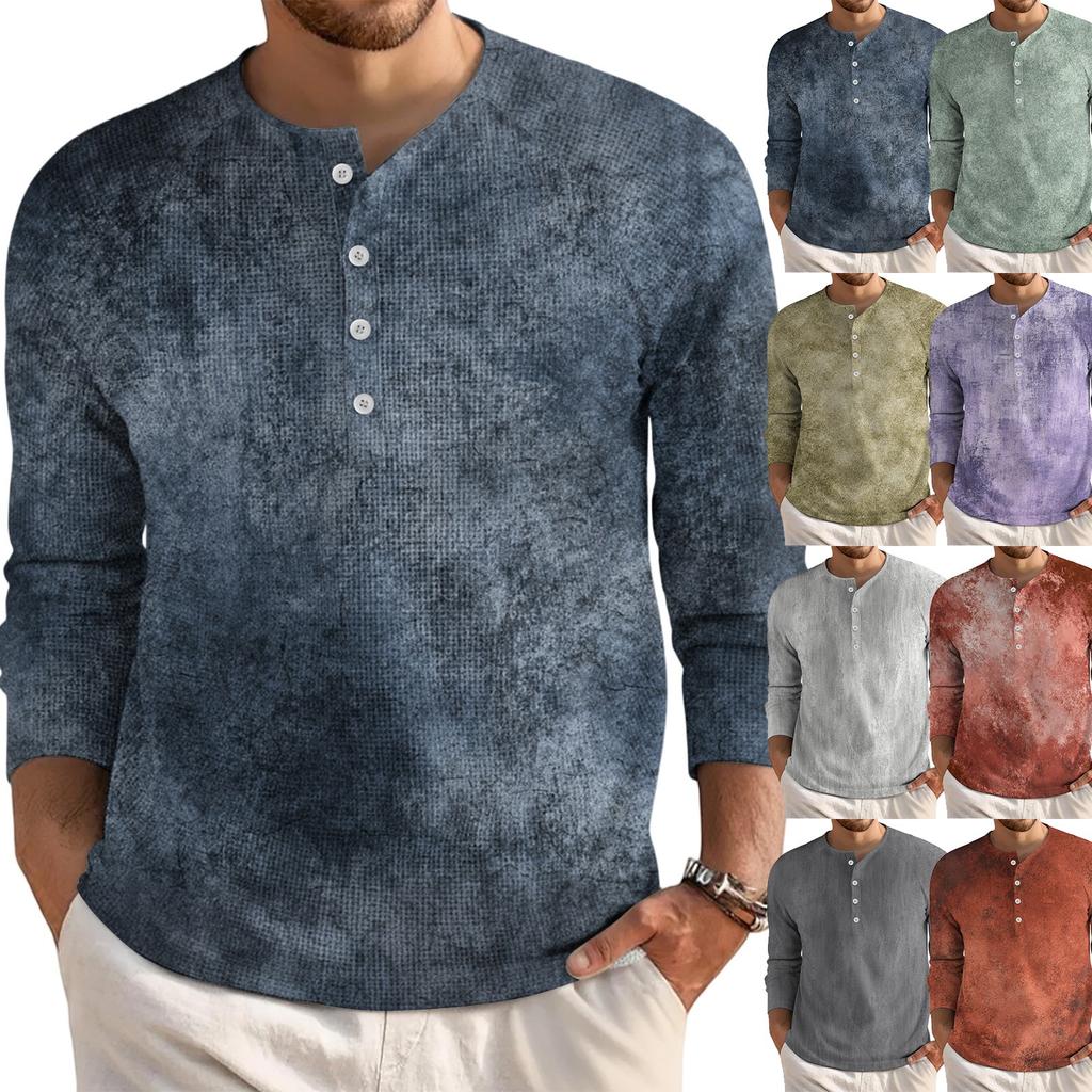 Pánský volný ležérní top s límečkem na knoflíčky a dlouhým rukávem