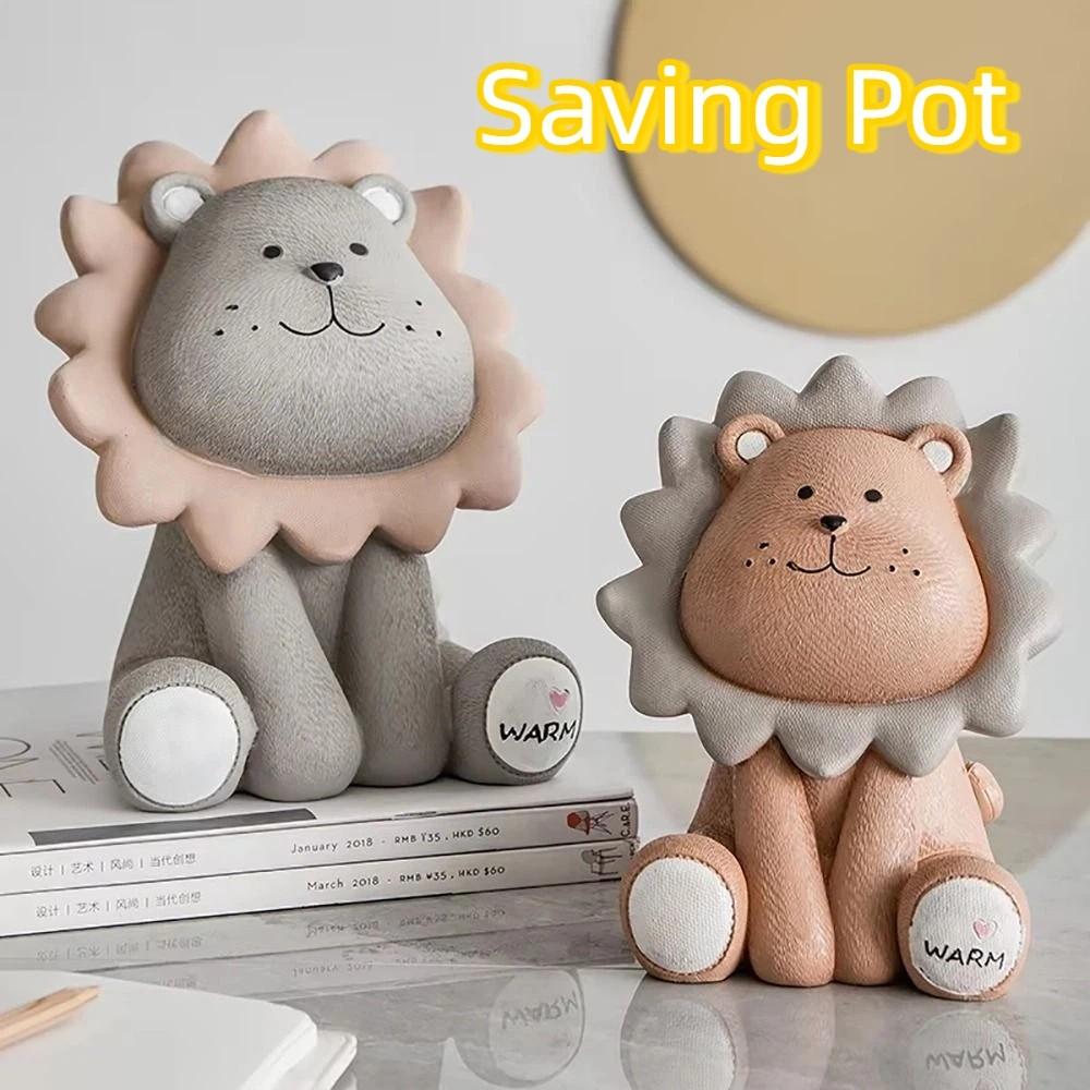 Nordic Style Lion Money Box Resistant Fall Saving Box Animal Figurines Piggy Bank Children Gits