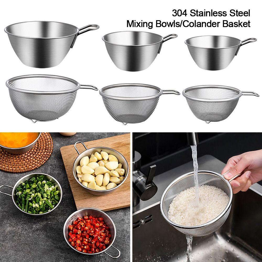 with Handle Bowl 304 Stainless Steel Fine Mesh Strainer Colander Basket Kitchen Tool