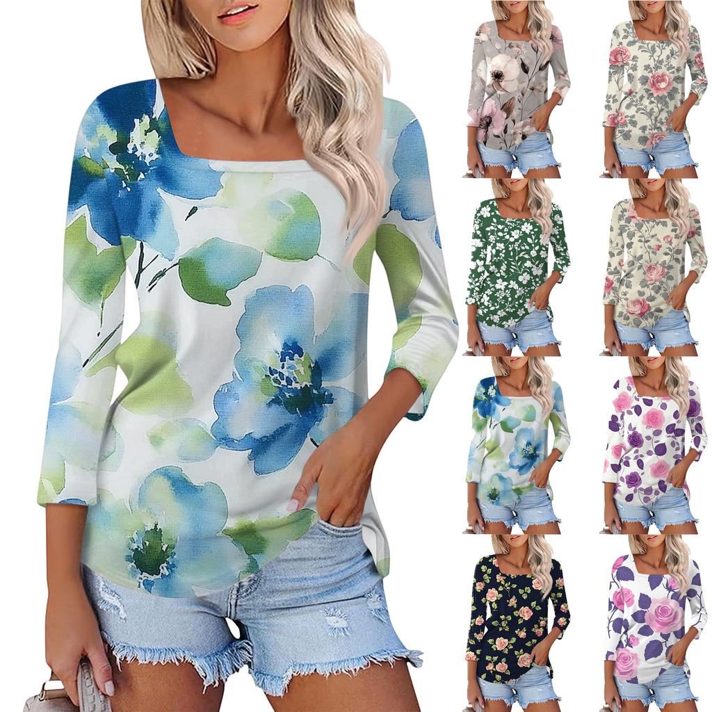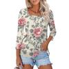 Dámské tričko s potiskem a 3/4 rukávy pro každodenní nošení i na víkend, módní základní top se čtvercovým výstřihem, běžný střih