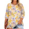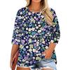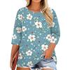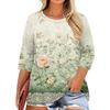 Women's Fashion Casual Print Round Neck 3/4 Sleeve T-Shirt Top