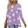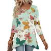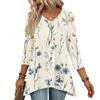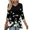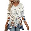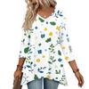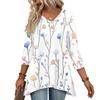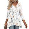 Dámské topy s výstřihem do V a 3/4 rukávem, ležérní košile střední délky, módní tuniky s potiskem