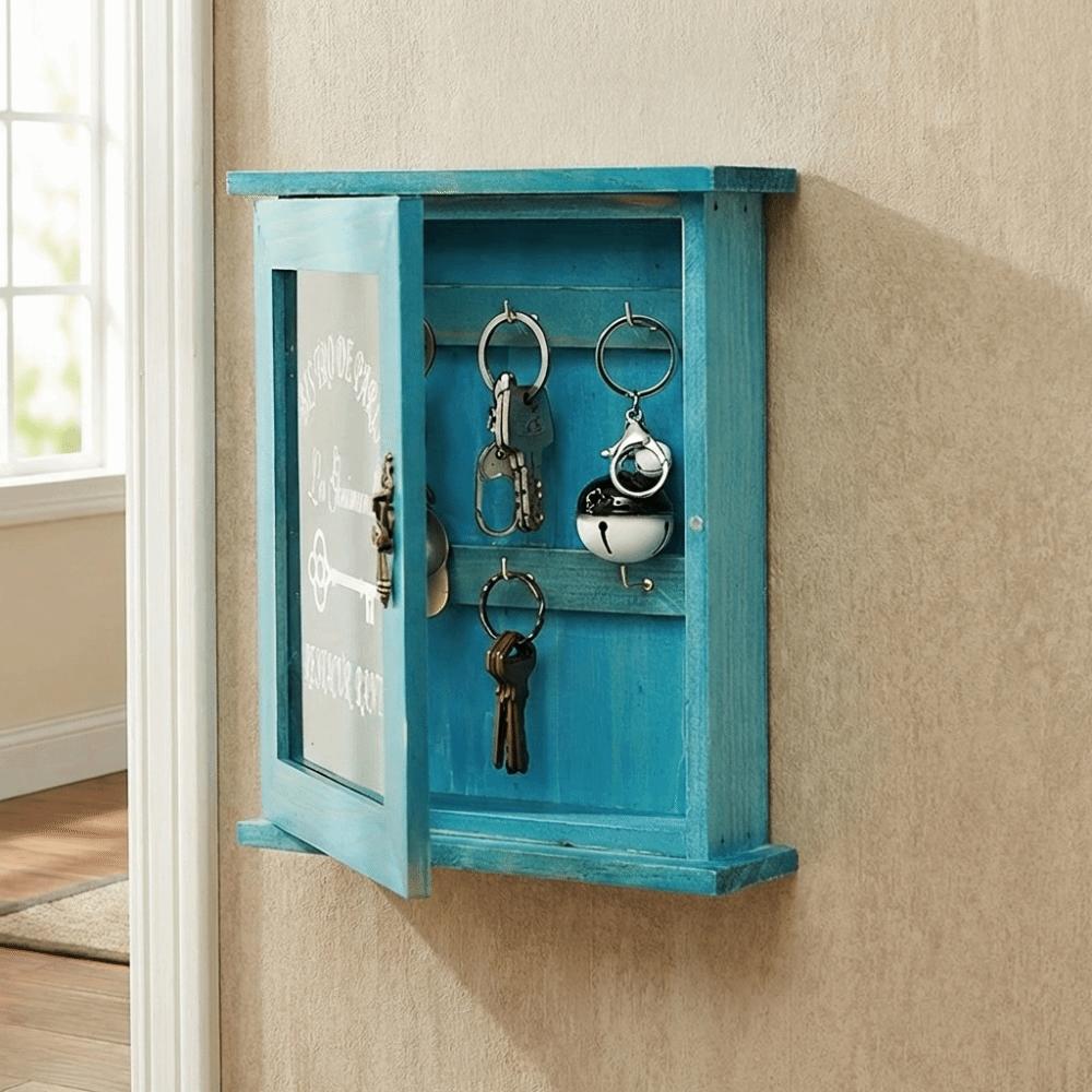 Vintage Wall-Mounted Key Holder Rustic Key Storage Box Wall Decoration Key Hook Living Room