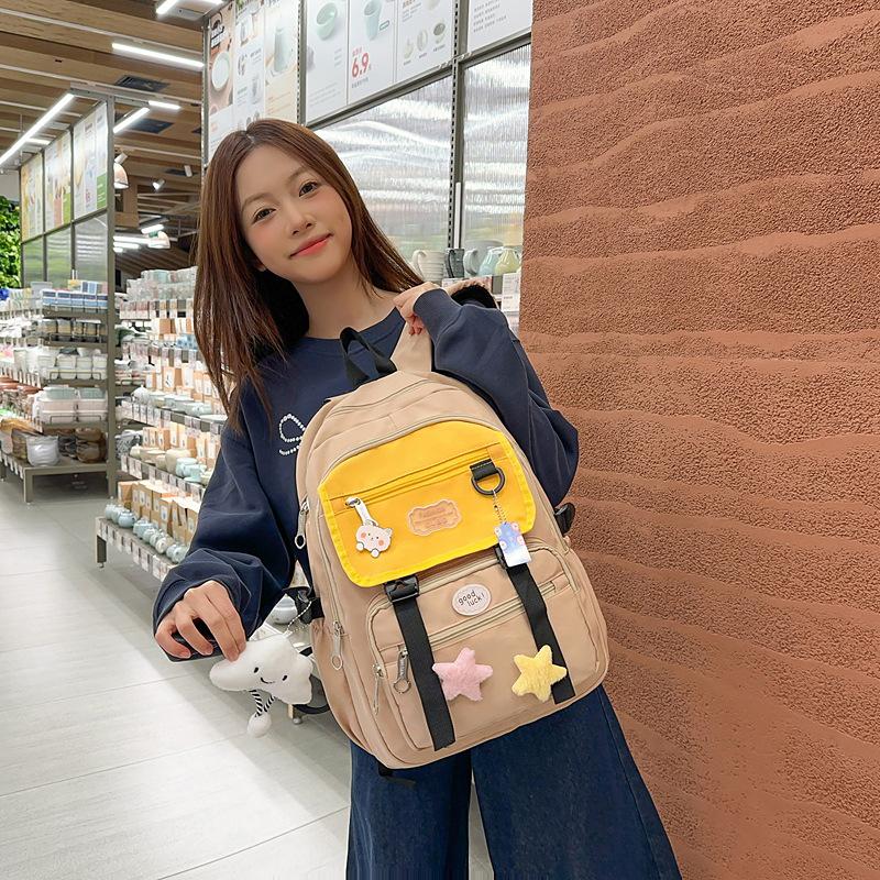 New Student Versatile Campus Backpack Large Capacity Backpack Cute and Simple Class School Bag Reduce Burden and Protect Ridge