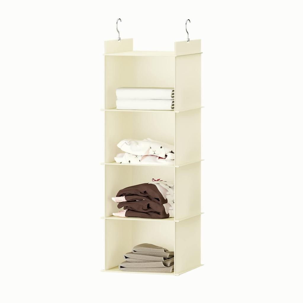 YOUDENOVA Hanging Storage Clothes Rack, Foldable Closet Hanging Storage, Suitable for Stuffed Animals, Clothes, Towels, Space-Saving Hanger Rack, Beige, 4 Tiers, Hanging Bag