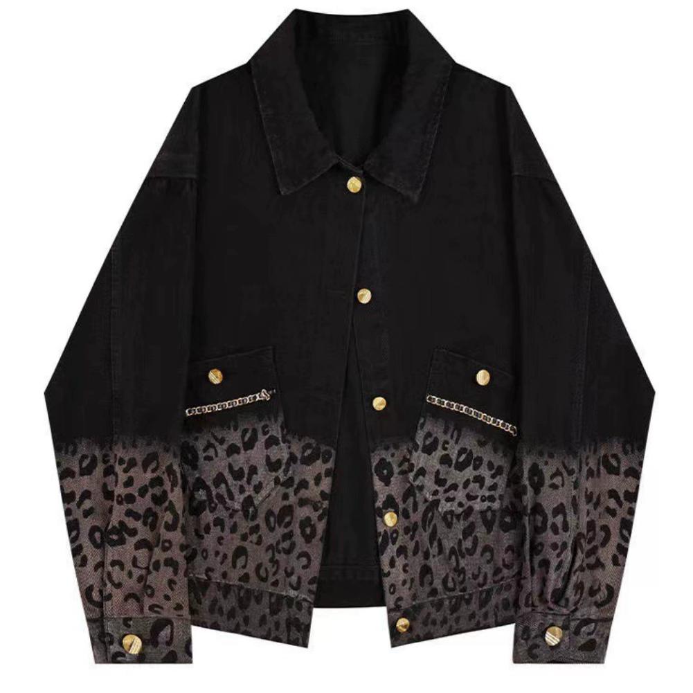 Black Retro Leopard Print Denim Jacket, Women's Fashion Short Jacket, Women's New Jacket