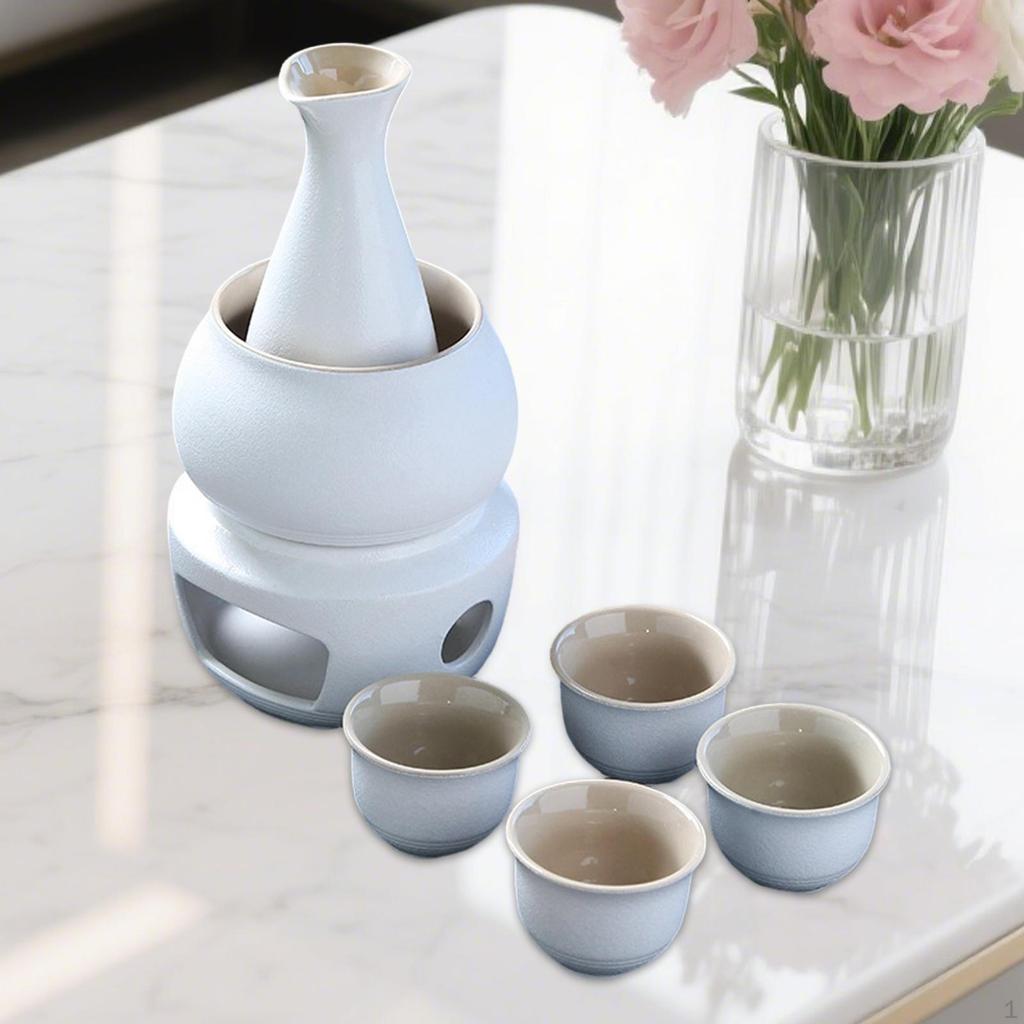 - 【Package Includes】: Including 1 sake pot, 1 warmer, 1 base and 4 cups