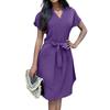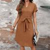 Women's Fashion V-neck Short Sleeve Bow Belt Dress