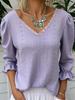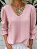 2026 Spring New Women's V-neck Hollow-out Casual Mid-sleeve Top Women's Shirt