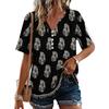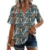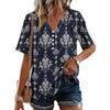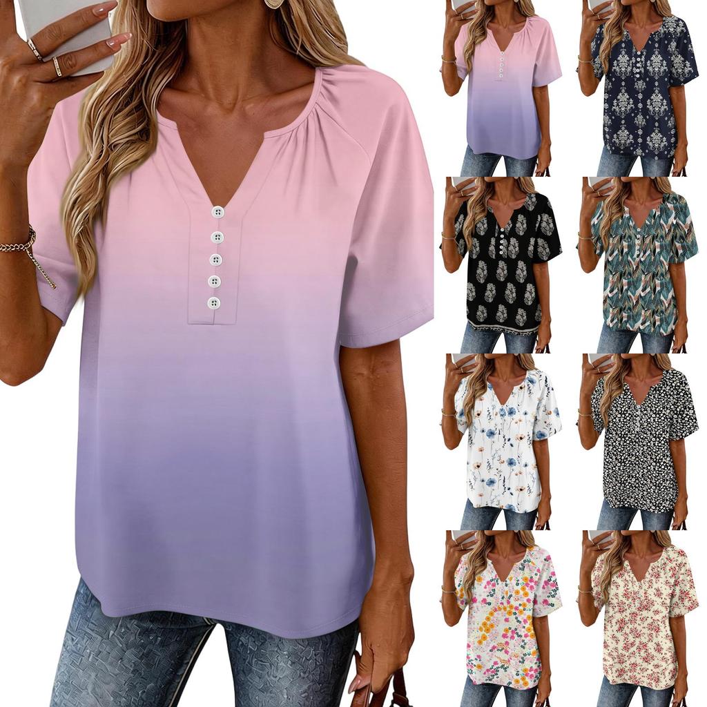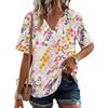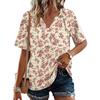 Women's Fashionable Casual Floral Print Button V-neck Short-sleeved Top