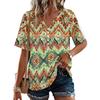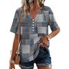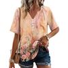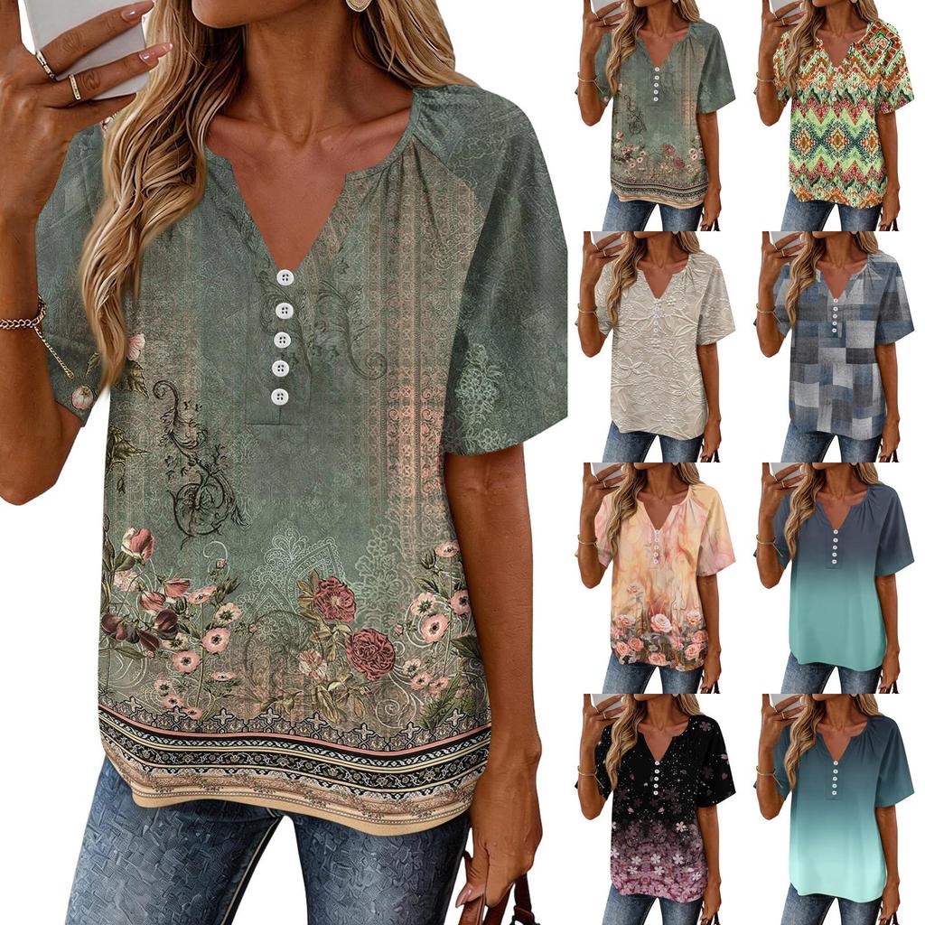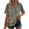 Women's Fashionable Casual Floral Print Button V-neck Short-sleeved Top