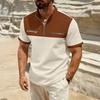 Men's Color Blocked Stand Up Collar 1/4 Zip Up Shirt Men's Casual And Comfortable Short Sleeved Shirt