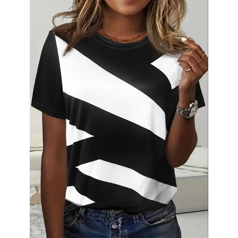Vacation oriented spring and summer new irregular geometric pattern printed women's T-shirt