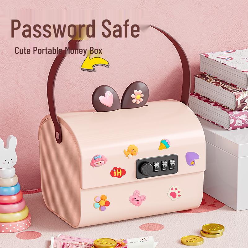 Children's Lockable Storage Box Piggy Bank with Stickers DIY - Cute Handheld Design