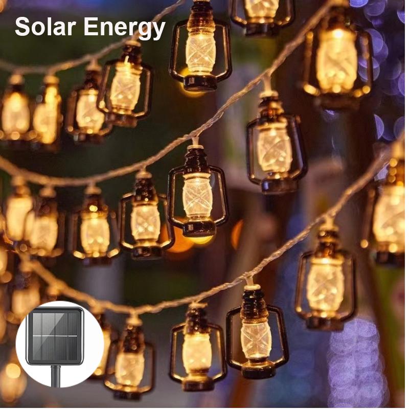 5M-12M Solar Camping Lantern String Lights Mini Kerosene Lamp 8 Modes For Indoor And Outdoor Garden Holiday Decoration Battery Power 2M/3M/5M
