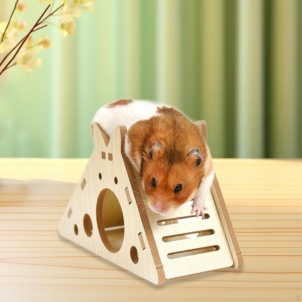 - 【Hamster Cabin Accessories】: Wooden slide hamster house, providing space for hamsters to play, rest, sleep, chewing and hideout