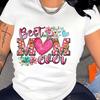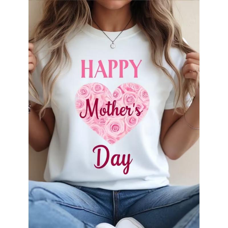 Happy Mother'S Day Floral Heart Print T-shirt. Women'S Summer White Crew Neck Short Sleeve T-Shirt, Casual Short Sleeve Tee.
