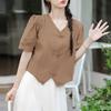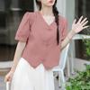 ZANZEA Dámská ležérní letní halenka s V-výstřihem, jednobarevná, krátký rukáv