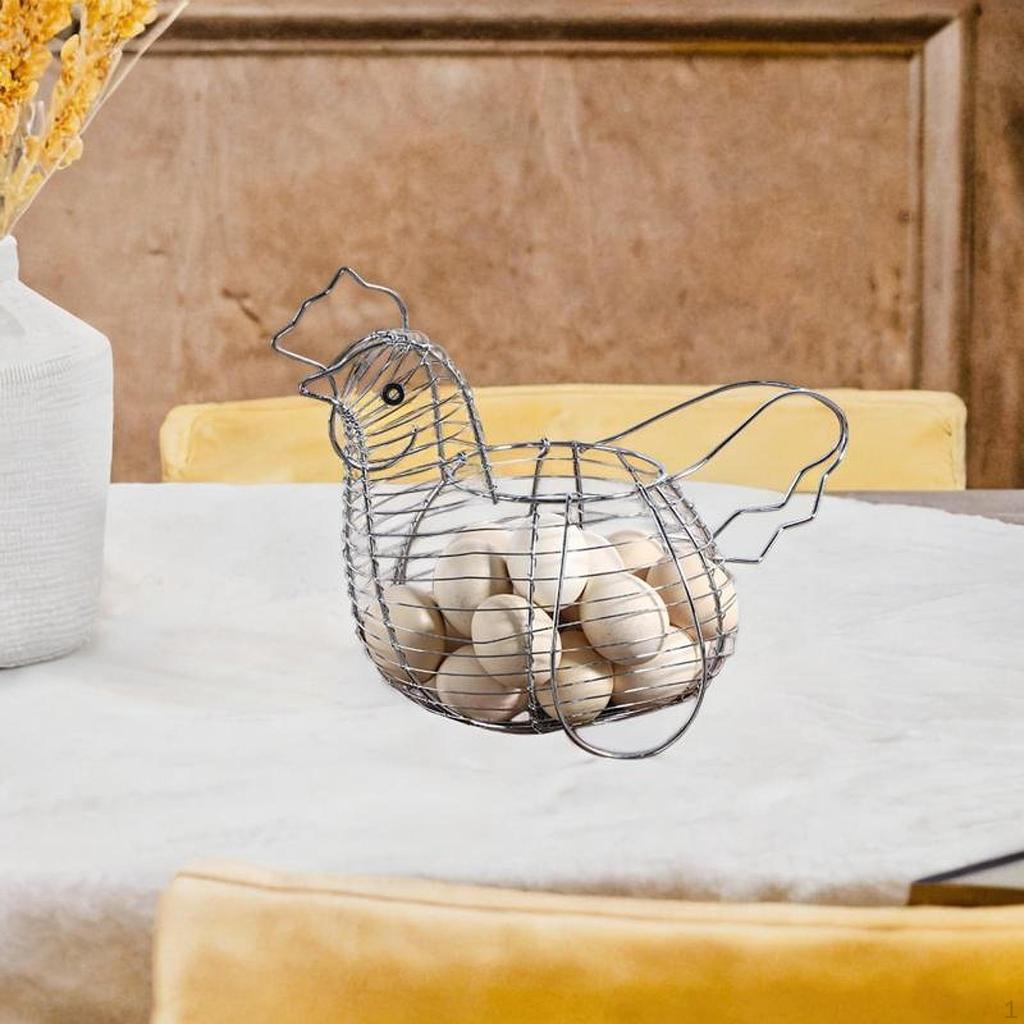 - 【Feature】: This Wire Chicken Shaped Egg Storage Basket, a kitchen essential, is meticulously electroplated from quality iron wire, ensuring durability and longevity