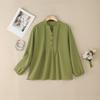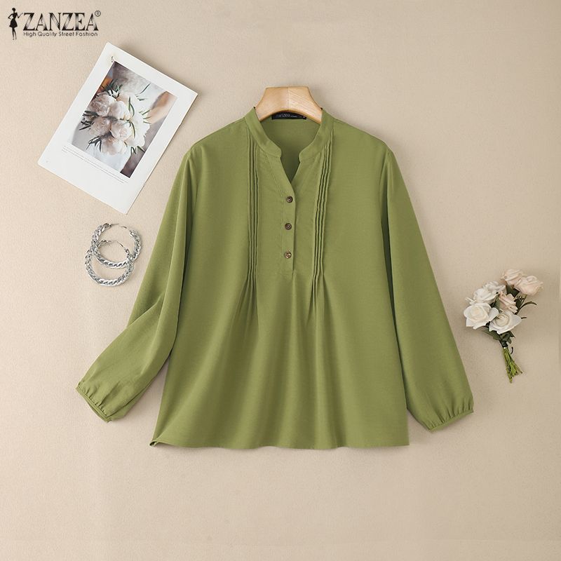 ZANZEA Dámská ležérní jednobarevná volná halenka s V-výstřihem a dlouhým rukávem