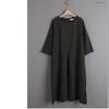 Korean version of chic cotton and linen medium and long dress for women, loose meat covering large size fashion large pocket casual dress