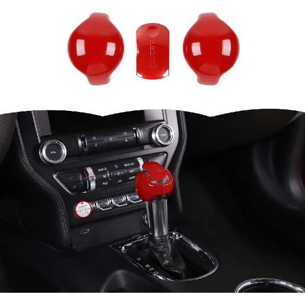RT-TCZ Gear Shift Knob Cover Trim Interior Accessories for Ford Mustang 2015-2024 3PCS (Red Carbon Fiber)