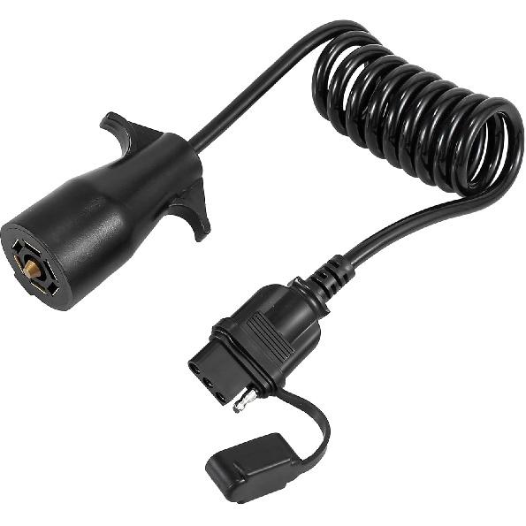 4.5ft 7 Way Round to 4 Way Pin Flat Trailer Coiled Wiring Harness Connector Adapter Plug/Rear for Car/Durable / 1 Pcs