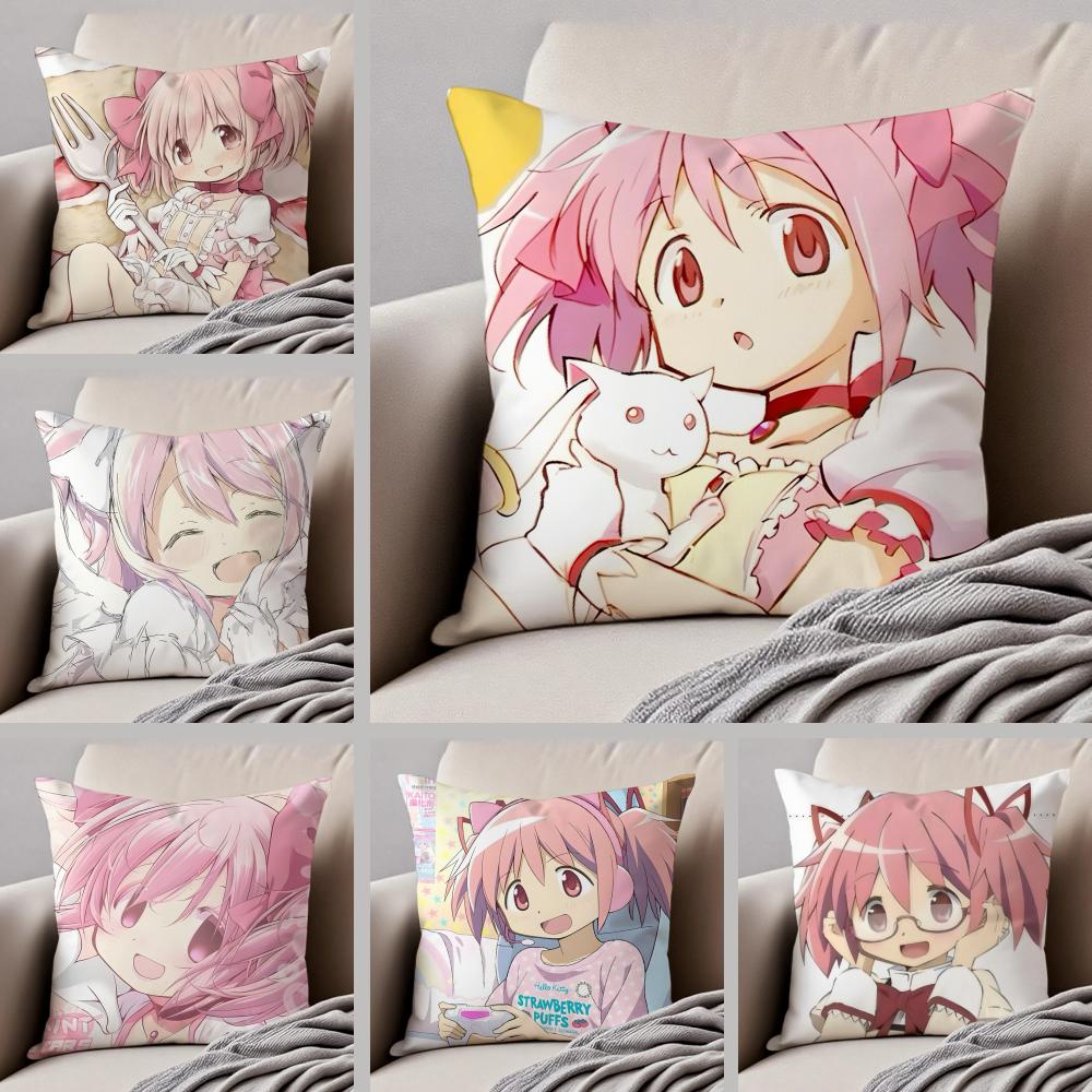 Anime MMadoka MMagica Cushion Cover Throw Pillow Cover Hidden Button Durable Polyester Chair Cushion