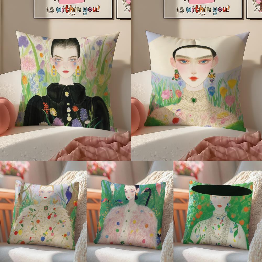 Fashion Illustration Cushion Cover Pillowcase Short Plush Invisible zipper Room Sofa Cushion Cover