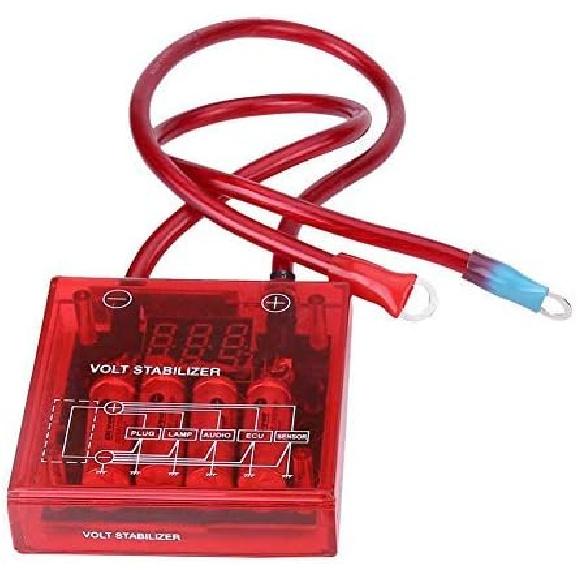 Auto Alternator Voltage Regulator, 12V Digital Stabilizer Kit with 3 Ground Cables Universal Regulator for Car Truck Electrical System (Red