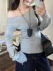 Sexy Svetry Dámské Odhalená Ramena Zkrácené Pletené Základní Oblečení Podzim Vše-ladící Boční Rozparek Jednoduché Jemné Štíhlé Vznešené Svodné