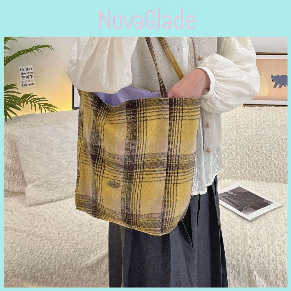 Stylish Design: This tote bag features a trendy vintage plaid pattern that adds a chic touch to any outfit, perfect for street fashion enthusiasts.