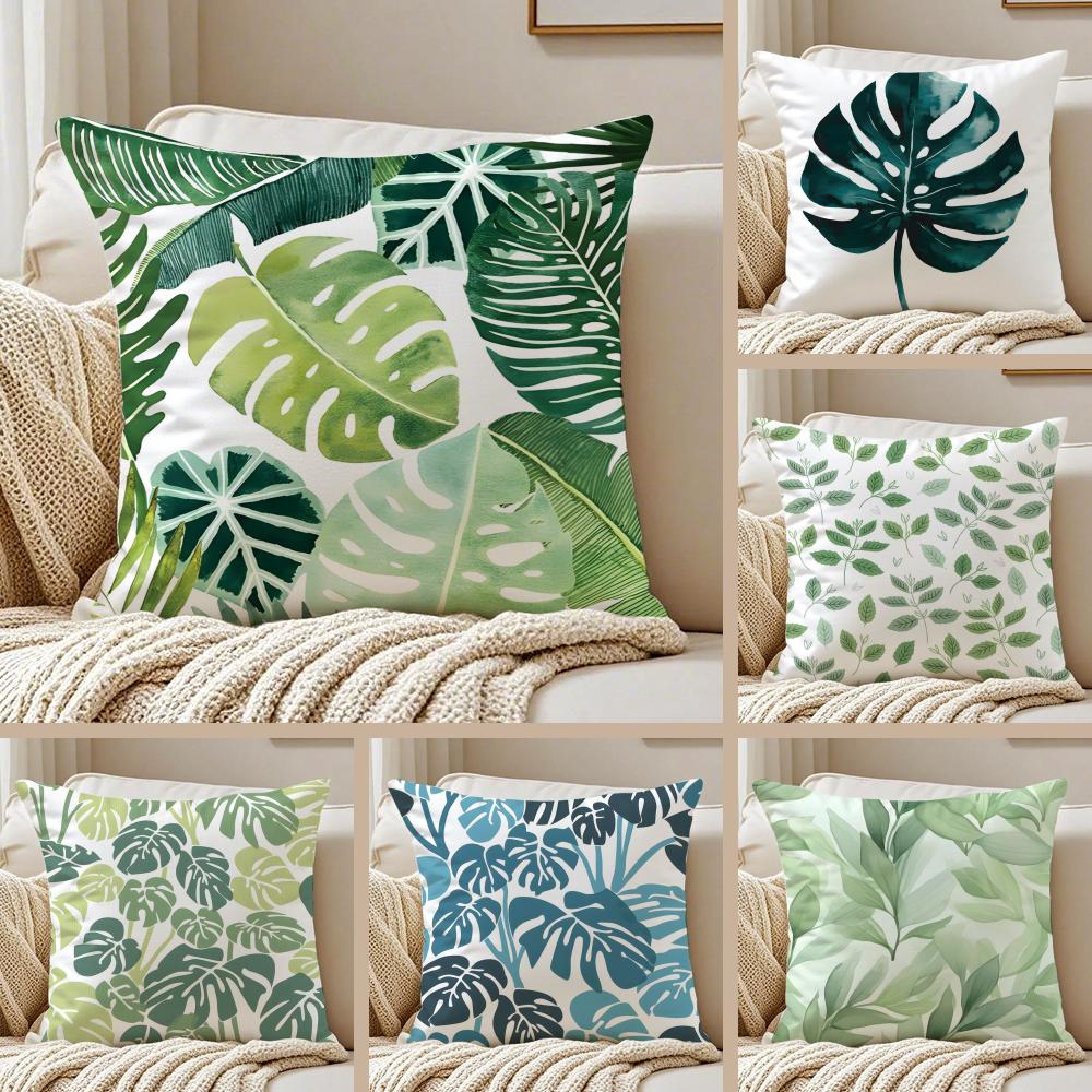 Modern style Leaf Cushion Cover Pillowcase Antidustmite Invisible Zipper Short Plush Sofa Cushion