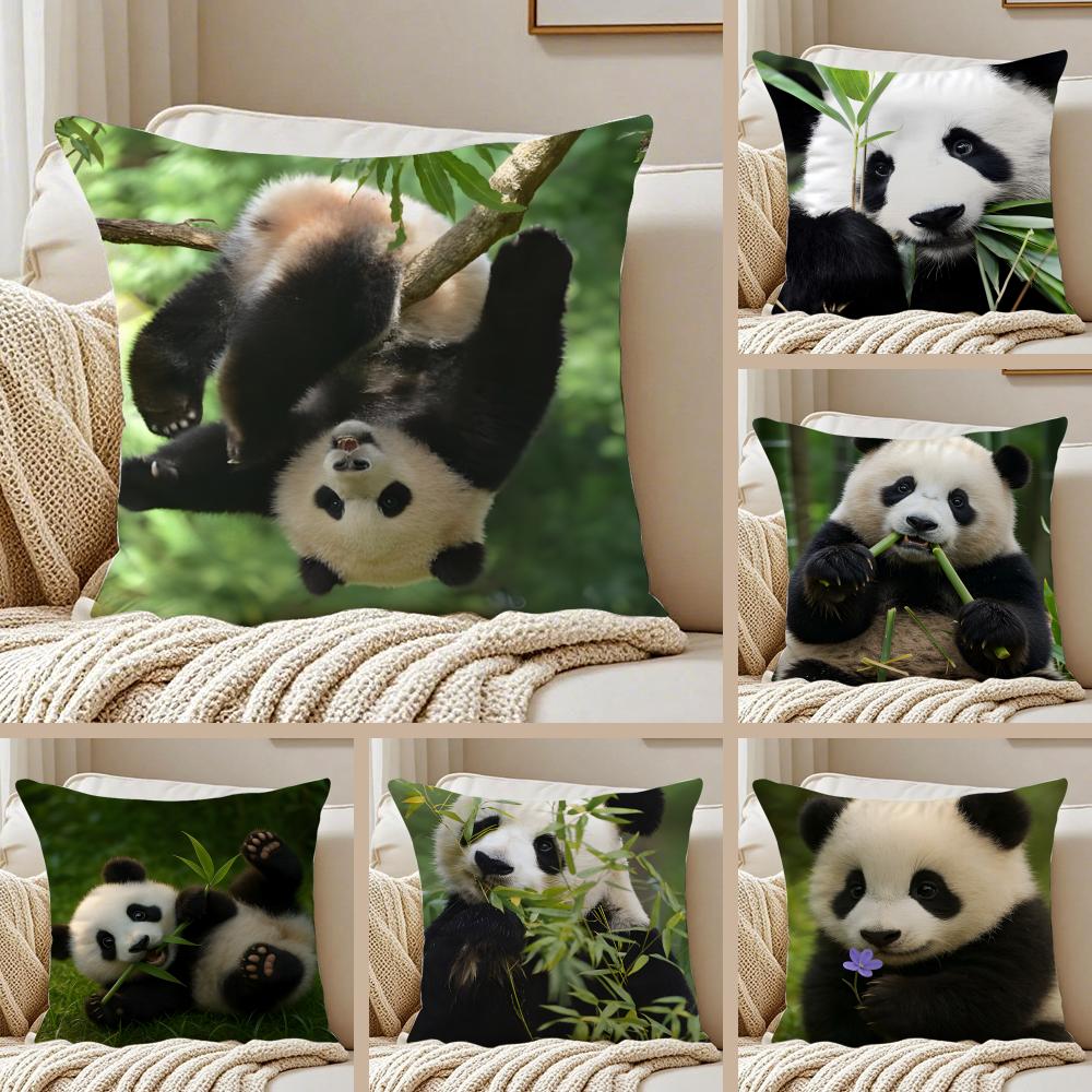 cute Panda Cushion Cover Pillowcase Antidustmite Invisible Zipper Short Plush Sofa Cushion