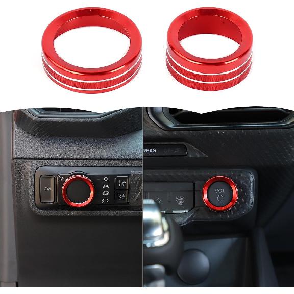 RT-TCZ Headlight Knob Cover Audio Volume Switch Cover Trim Center Console Interior Accessories for Ford Mustang 2024 2025 (Red)