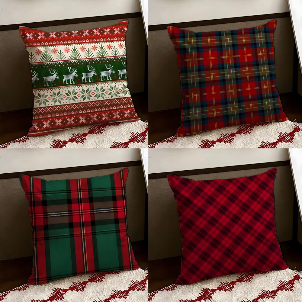 Christmas PPlaid Cushion Cover Reversible Soft Durable Pillow Cover Home Car MultiScene Use for Daily Comfort